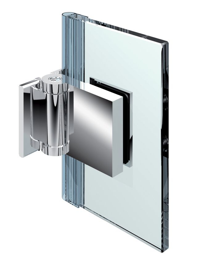jednostranné otevírání do vnější strany o 90 ° , pevný nulový bod v 0 ° , oboustranná montážní deska , potřebné vrtání skla , tloušťka skla 6/8/10 mm , žádné viditelné šrouby