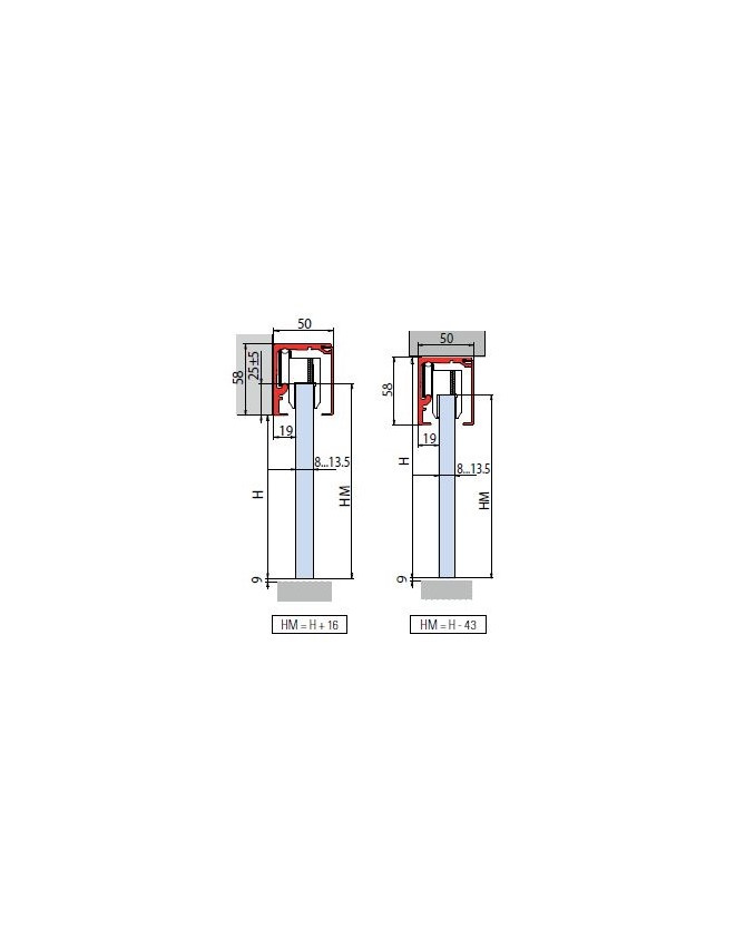 Kompletní posuvný set- systém Evolution, délka kolejnice L = 2000mm, pro tloušťku skla 8-10mm, max.váha křídla 120kg, max.šířka křídla 1000mm