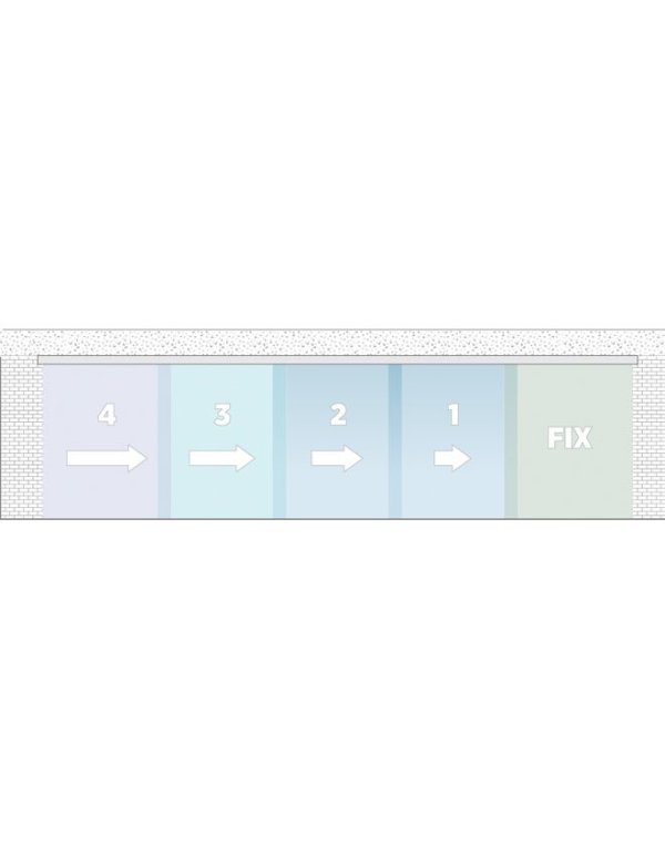 , Systém tlumeného dovíraní, 1, , Vodicí kolejnice pro montáž do stropu, 1, , Krycí profil (max.3500 mm), 2, , Podlahové vodítko a krytky, 1, , Sada vozíků a příslušenství , 1